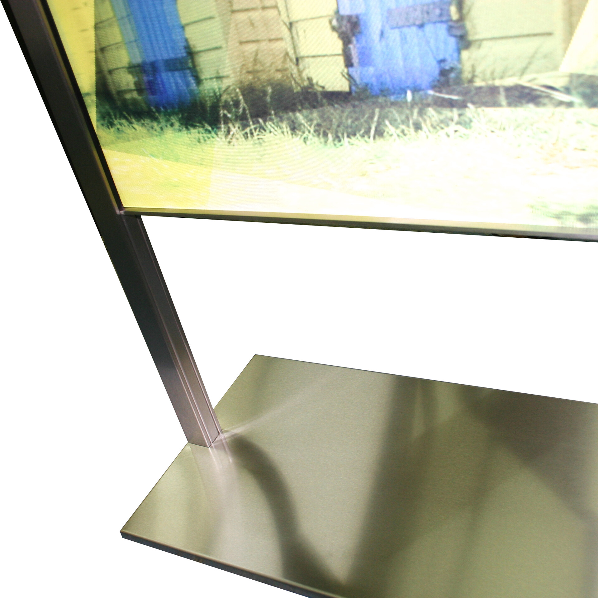 Konstruktion, Herstellung und Montage von Edelstahlrahmen, Diagonalvitrinen und beleuchteter Werbetechnik.